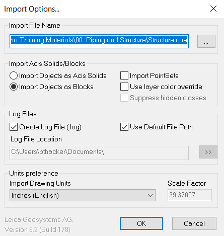 If you need to preserve intelligence with your model data then you’ll want to take advantage of the COE export format. First, you’ll need to download the Leica COE plugin. Keep in mind, this plugin will only work for versions of AutoCAD up to 2021.