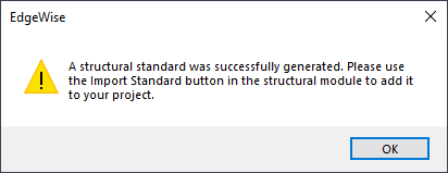 - Select the desired Steel standard and click Open. An Edgewise dialogue box will appear to confirm that the import is complete.