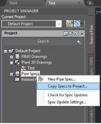 Alternatively, in Plant3D 2018 and later, you can add specs to a single project. Import either the “EdgeWise ASME” or “EdgeWise DIN” .pspc and .pspx files using the Copy Specs to Project… option under the Pipe Specs sub-menu in the Plant 3D Project Manage.
