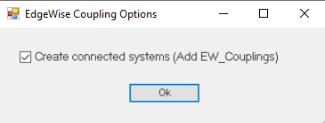 In Revit, start your EdgeWise import by going to the EdgeWise Import tab. Next, click Open Model, select your .c3rvt file, and click Open. At the EdgeWise Coupling Options you can choose to let Revit create couplings for you automatically. Click OK to allow this.