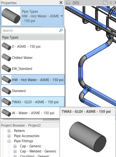 Your EdgeWise family is now swapped out with the correct Revit family. Keep in mind, you will need to do this separately for pipe fittings such as elbows and tee connections. Additionally, you will want to do this for valves and flanges.