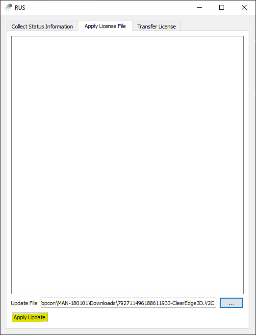 - Use the Apply File button to apply the .V2C and activate your license. The web page should show you a message stating “Update successfully applied!”