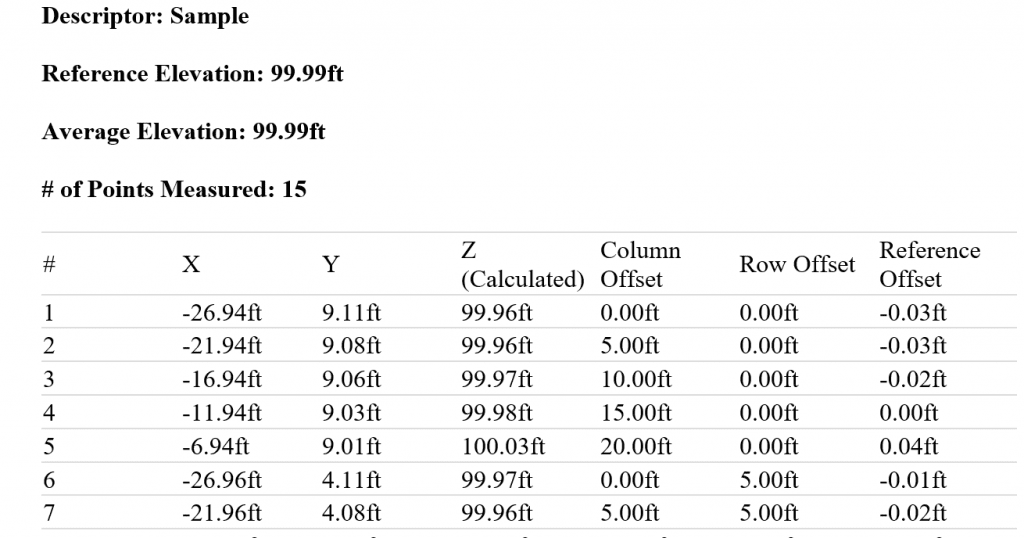 - Checking Show Point # will display the point number in your report.